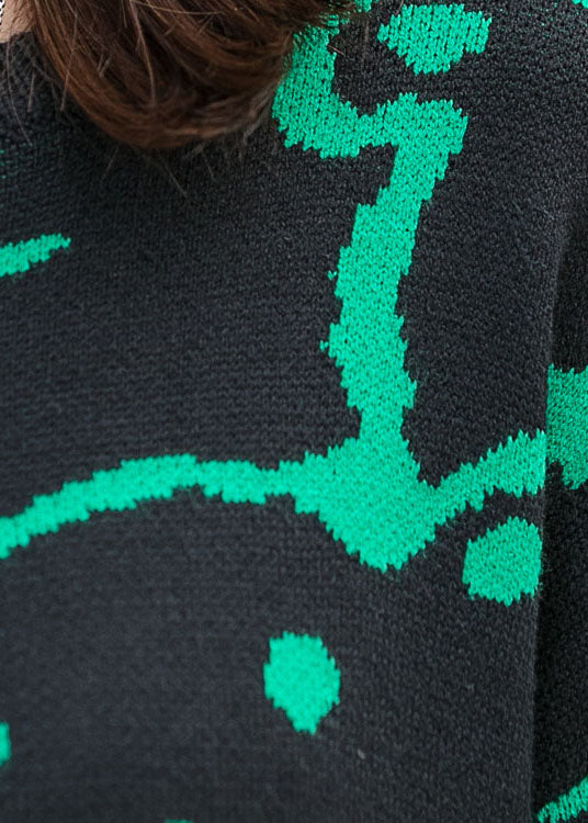 Art Black O-Neck Loose Knit Fall Ankle Dress Long sleeve