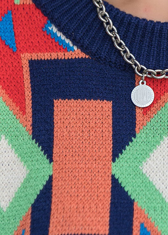 Fashion O-Neck Plaid Fall Knit Long Sleeve Dresses