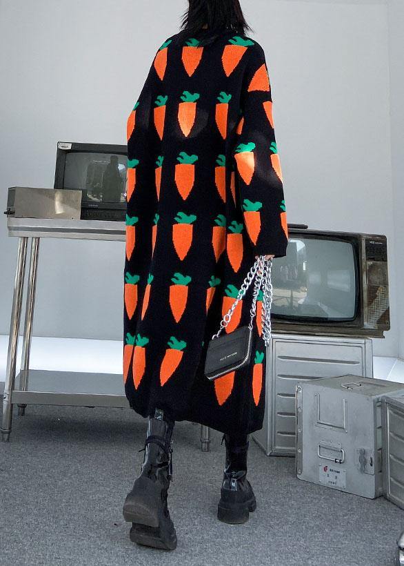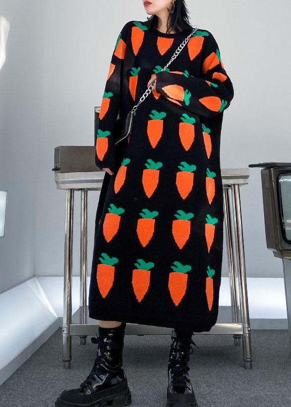 Pullover black print Sweater weather Re fashion o neck baggy Tejidos knit dresses